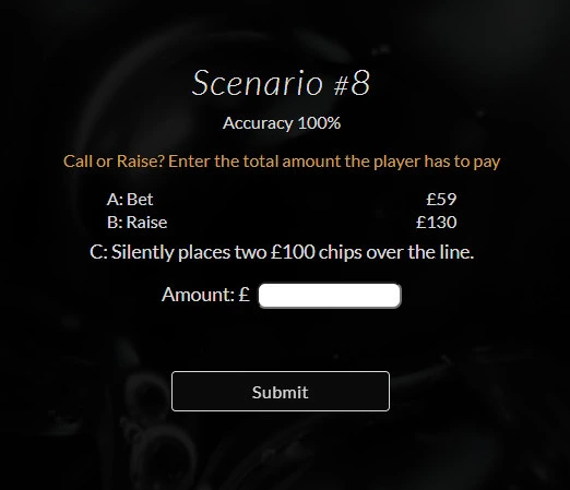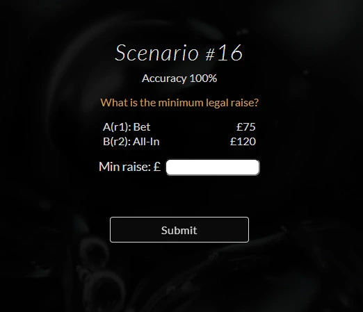 As there is no action that comes before the £75 bet the minimum bet will be twice the size. Once we know the legal minimum raise against the previous action we can proceed with the second part of the equation, the "Extra" part.