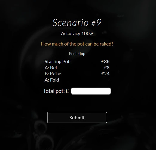 You will be given a series of actions and you must correctly determine how much of the pot can be raked.