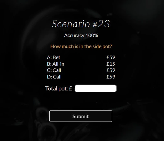 In the example above the main pot will be £60, £15 will be contributed to it by all of the players.