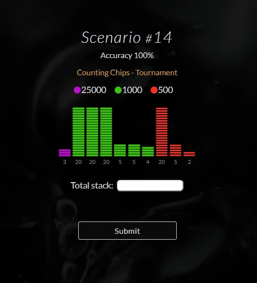 You will be shown a chip stack that would emulate a player's chip stack in a tournament and you must correctly count it.